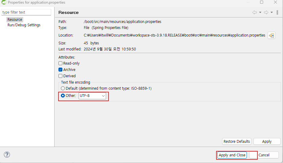 application.properites 파일에 필요한 환경설정 정보를 입력하면 됨 : xml과 동일하게 환경 설정