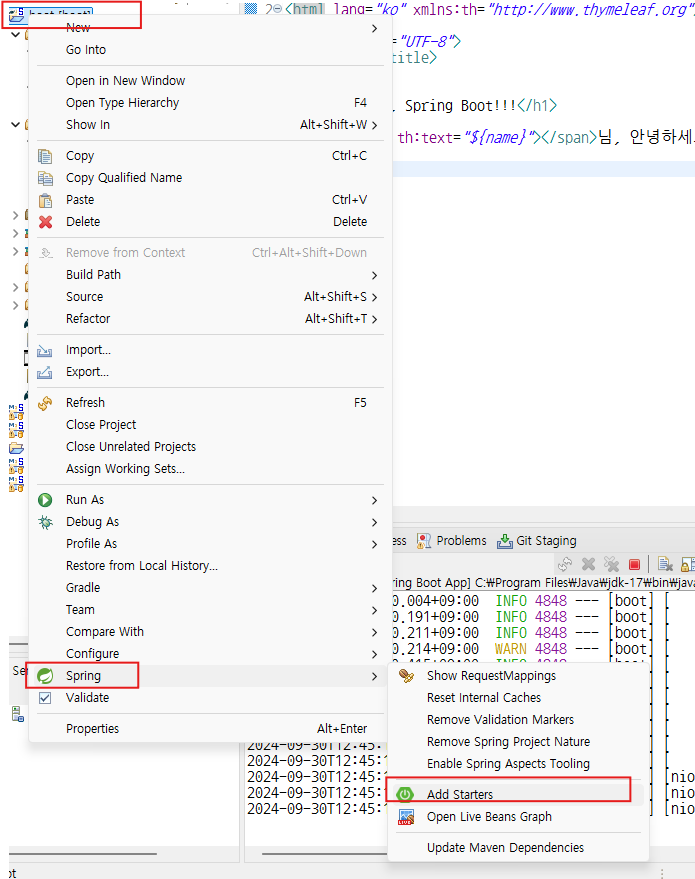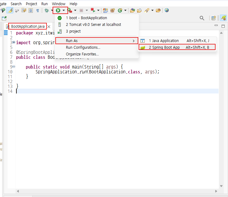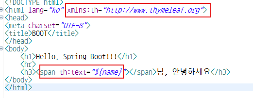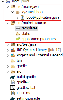 BootApplication.java 파일이 실행될 때 application.properites 파일을 읽어드려 실행 - 제대로된 내장 아파치 톰캣이 실행됨