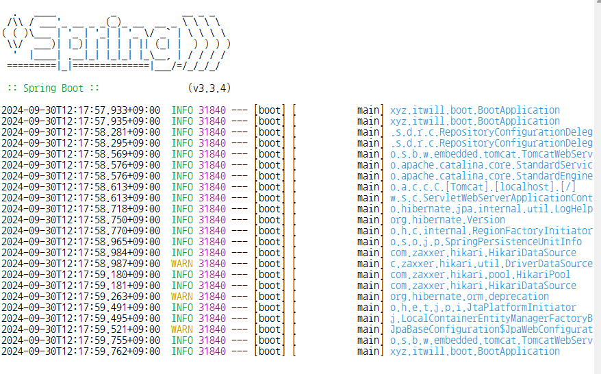 부트는 내장된 톰캣이 실행되어 아파치 톰캣을 사용할 필요가 없음.