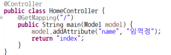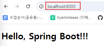 HomeController 실행 후 localhost:8000/ 요청 시 출력 화면