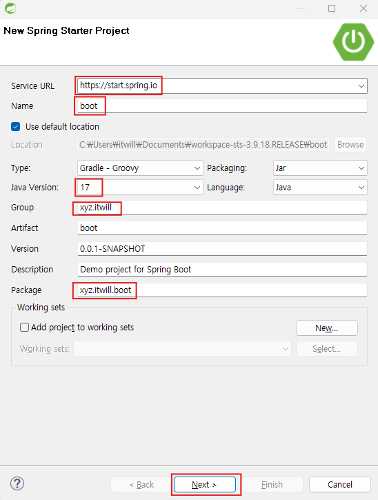 boot version에 따라 자동으로 라이브러리 version이 달라짐