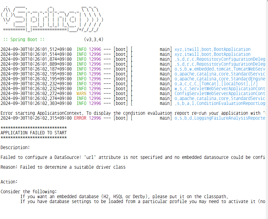 BootApplication 실행 : 최초 실행시 url 관련 error 발생 - DataBase Setting 시 WAS Start가 제대로 되어 사용 가능