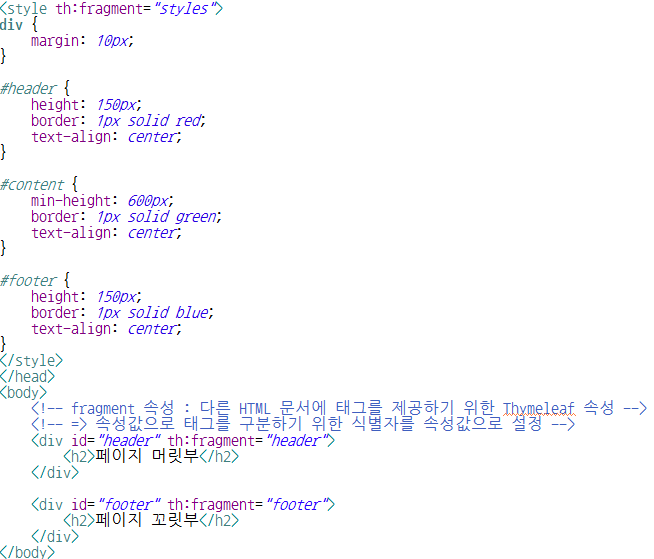 fragment 속성 : 다른 HTML 문서에 태그를 제공하기 위한 Thymeleaf 속성