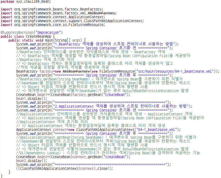 9. 04-1_beanCreate.xml : 스프링 컨테이너(Spring Bean(객체) 관리)