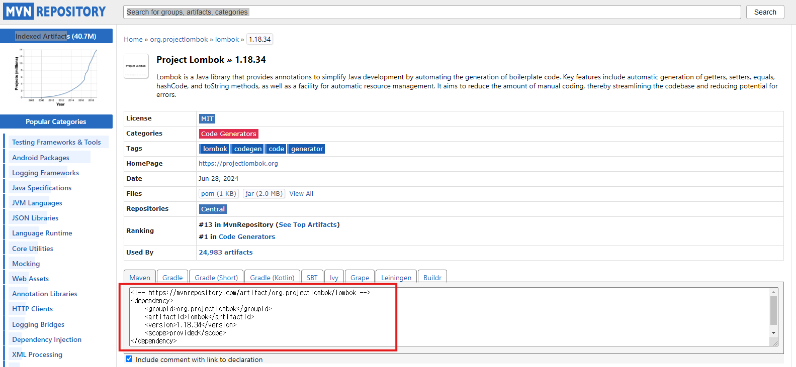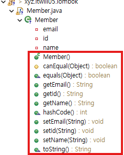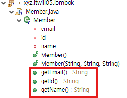 @Getter : 클래스에 작성된 모든 필드에 대한 Getter 메소드를 제공하기 위한 어노테이션