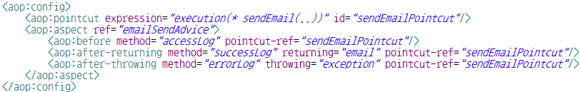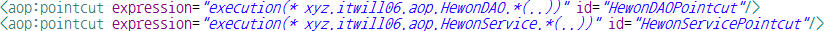 - id 속성 : pointcut 엘리먼트를 구분하기 위한 식별자를 속성값으로 설정