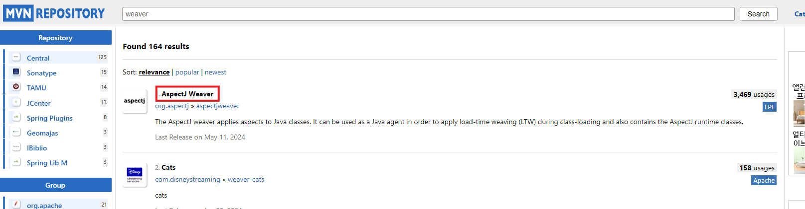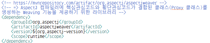 Spring AOP 기능을 사용하기 위해서는 aspectjrt 라이브러리와 aspectjweaver 라이브러리 필요 - 메이븐 : pom.xml 변경