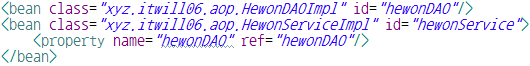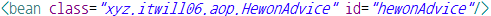 → 횡단관심코드(HewonAdvice)의 메소드를 호출하기 위한 객체를 제공받아 이용