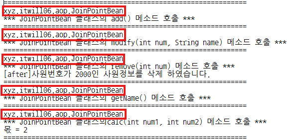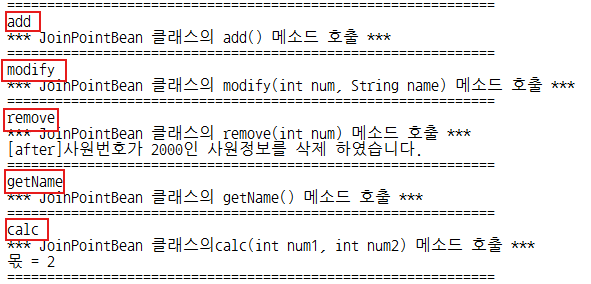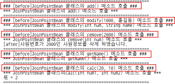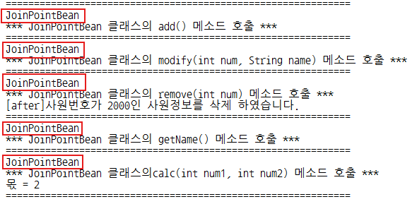 19. JoinPointBean(핵심관심모듈) : 메소드 5개 작성