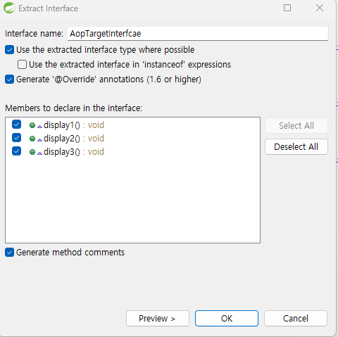 6. AopTwo : 핵심관심모듈 / AopTarget 인터페이스 상속