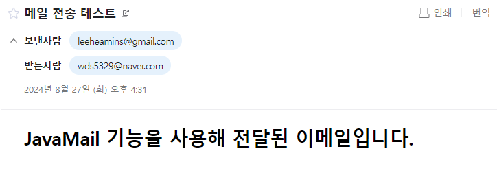 - MimeMessage.setSubject(String subject) : MimeMessage 객체의 메일 제목을 변경하는 메소드