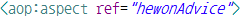 ref 속성 : 횡단관심모듈(Advice 클래스)의 식별자(beanNAme)을 속성값으로 설정