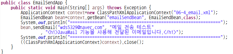 27. EmailSendBean : 핵심관심모듈 - 메일 전송 기능(JavaMail)을 제공하기 위한 클래스