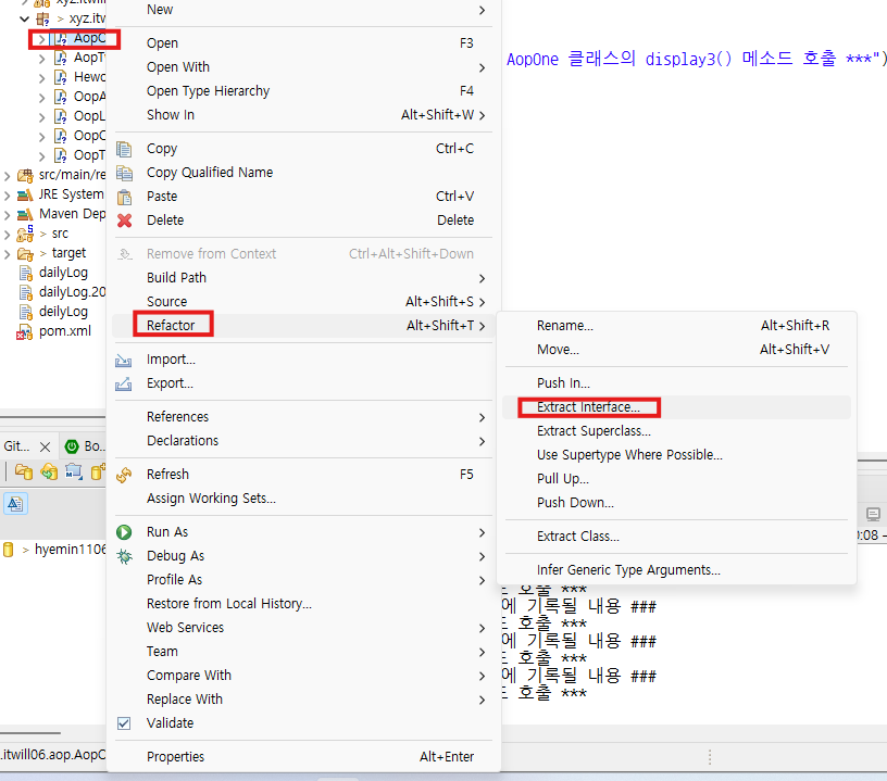 4. OopLogger : 핵심관심코드 실행전에 기록될 메소드(beforeLog) 작성