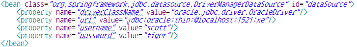 → Spring Bean Configuration File(07_dao.xml)에서 DataSource 인터페이스를 상속받은 자식클래스를 Spring Bean으로 등록해 스프링 컨테이너에 의해 관리되도록 설정