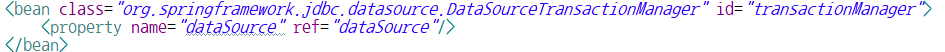 - dataSource 필드에 TransactionManager 객체에 의해 트랜잭션이 관리될 DataSource 객체가 저장되도록 의존성 주입 - Setter Injection(property)