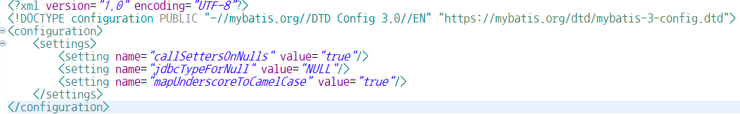 5. mybatis-config.xml([src//main/webapp] spring에 작성하는 것을 권장)