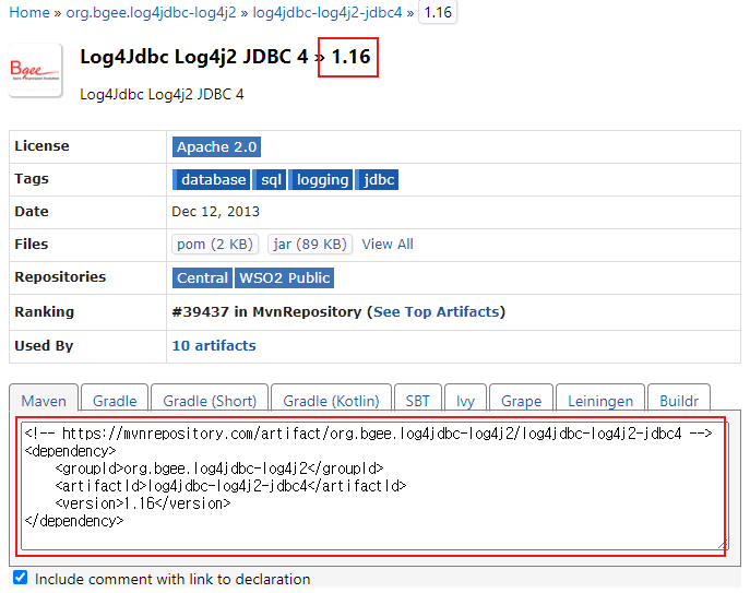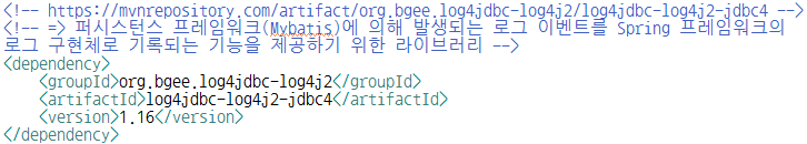 1. log4jdbc-log4j2-jdbc4 라이브러리를 프로젝트에 빌드 처리 - 메이븐 : pom.xml