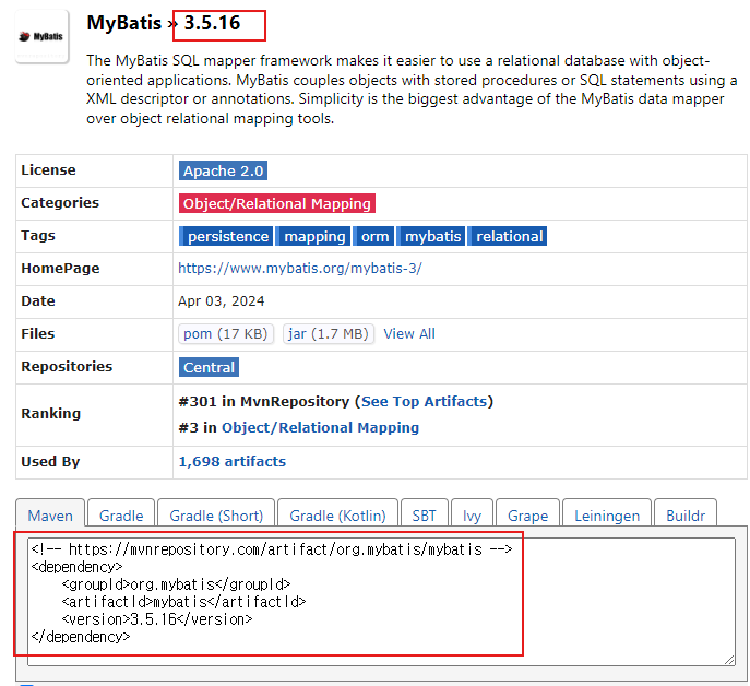 1. DataSource 관련 라이브러리와 Mybatis 관련 라이브러리를 프로젝트에 빌드 처리 - ojdbc, spring-jdbc(spring-tx), mybatis, mybatis-spring