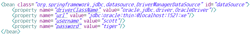 → 필드에 Connection 객체 생성에 필요한 값이 저장되도록 값 주입 - Setter Injection(property 엘리먼트)