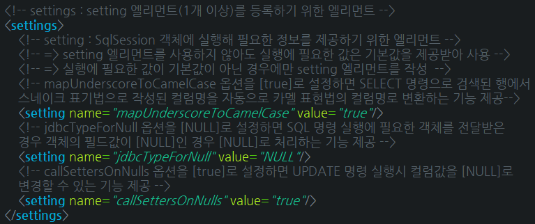 2. Mybatis 프레임워크의 환경설정파일(mybatis-config.xml - setting 엘리먼트) 작성