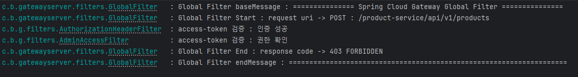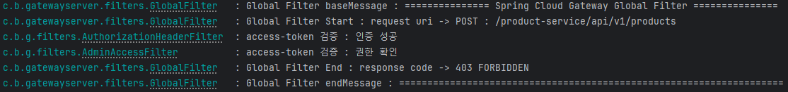 현재 JWT 검증 관련 필터는 AuthorizationHeaderFilter, 권한 확인용 필터는 AdminAccessFilter 입니다.