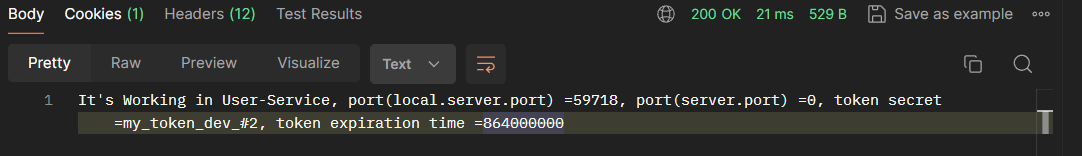 +", token expiration time =" + env.getProperty("token.expiration_time")