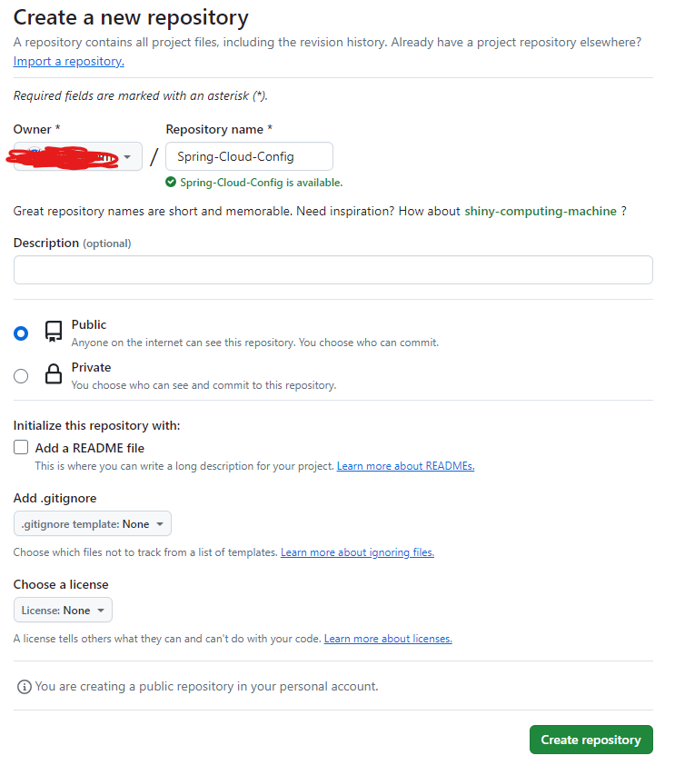 private으로 생성 시 설정 정보에 github 계정 정보를 추가해줘야 합니다.