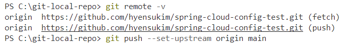 위에 명령어를 사용하여 local git과 Github의 Remote repo를 연동해줍니다.