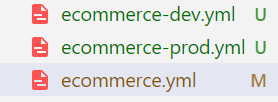 우선, 일반 ecommerce.yml, ecommenrce-dev.yml, ecommerce-prod.yml 파일을 생성해줍니다.