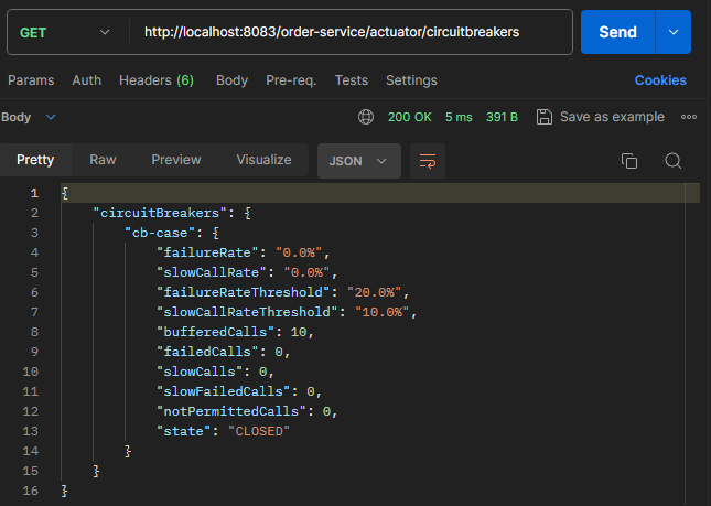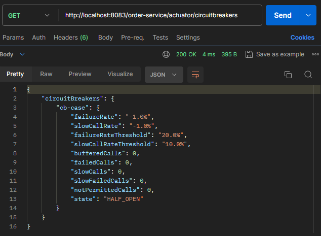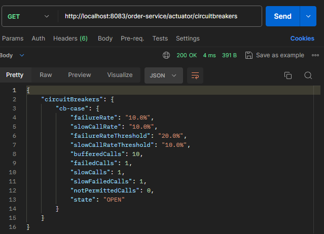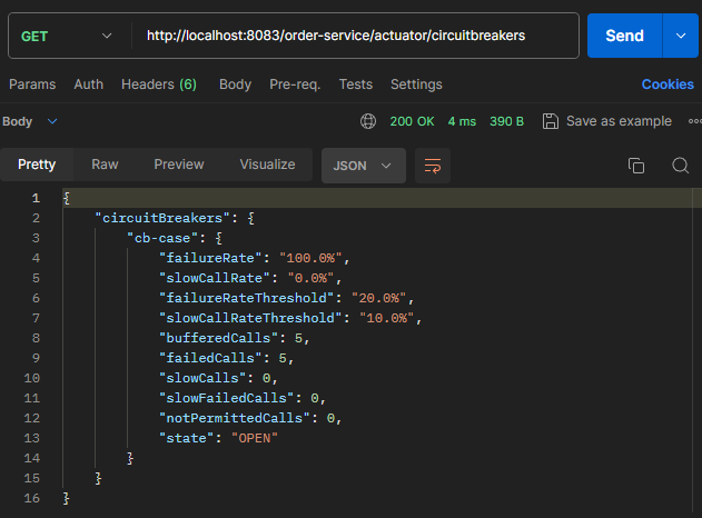 wait-duration-in-open-state: 6000ms # open 상태 유지 시간, 해당 시간 지연 후 half-open 으로 전환