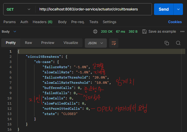 임계치(20%) 도달 시, 정상적으로 Circuit이 OPEN 되는것을 확인할 수 있습니다.
