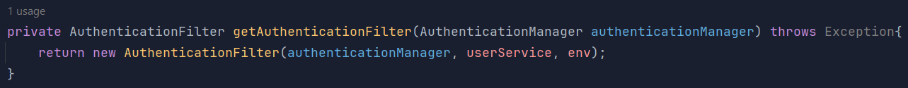 return new AuthenticationFilter(authenticationManager, userService, env);