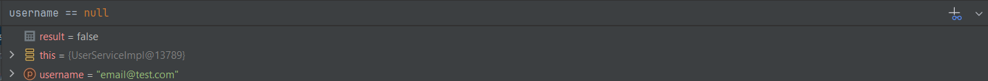 username이 null인지 여부를 물어보니 result = false 가 나오게 됩니다.