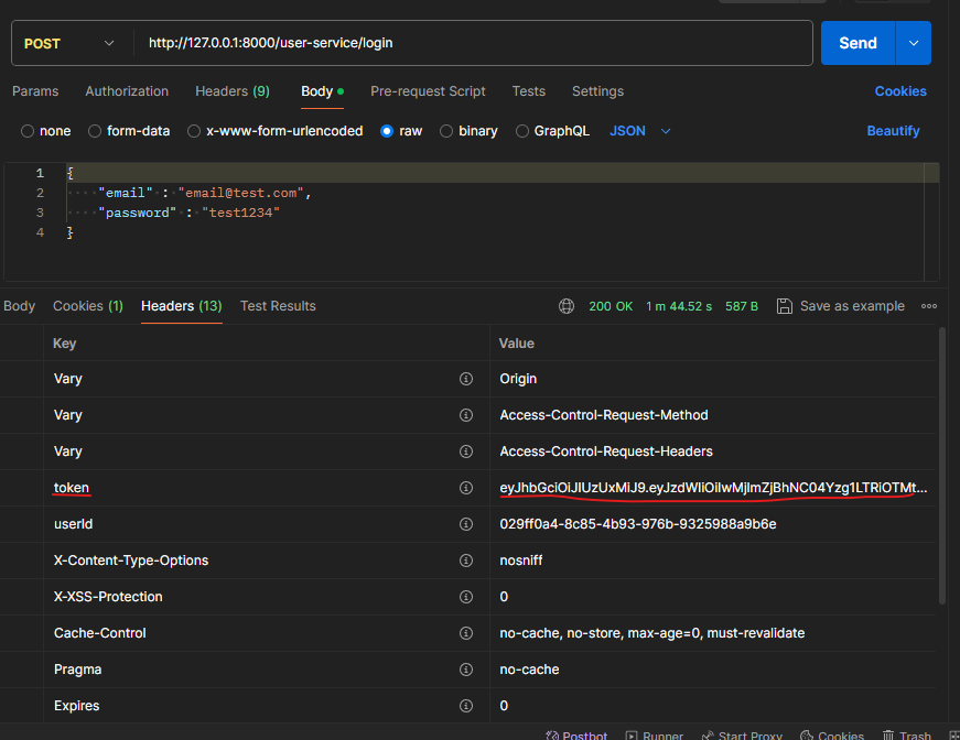 회원가입 후 로그인 시 아래와 같이 정상적으로 토큰이 발급된 것을 확인할 수 있습니다.