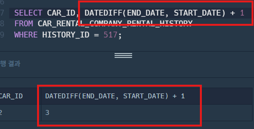 따라서, 실제 대여일을 알기위해서는 DATEDIFF() 함수에 1을 더해줘야 합니다.