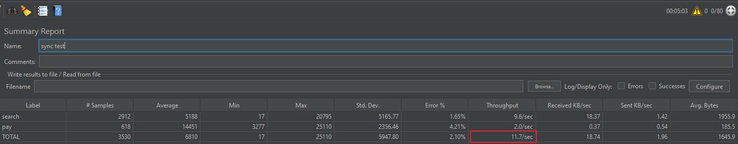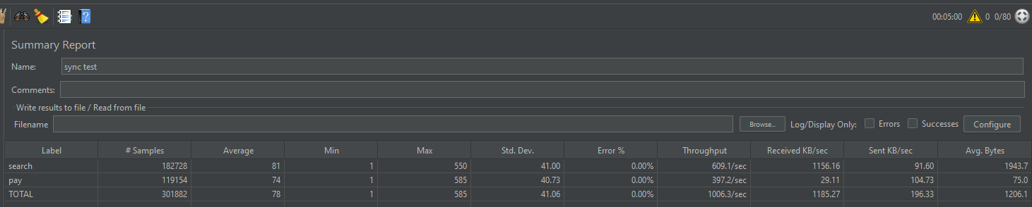 payment → Thread 30, Ramp-up : 10, Duration : 300