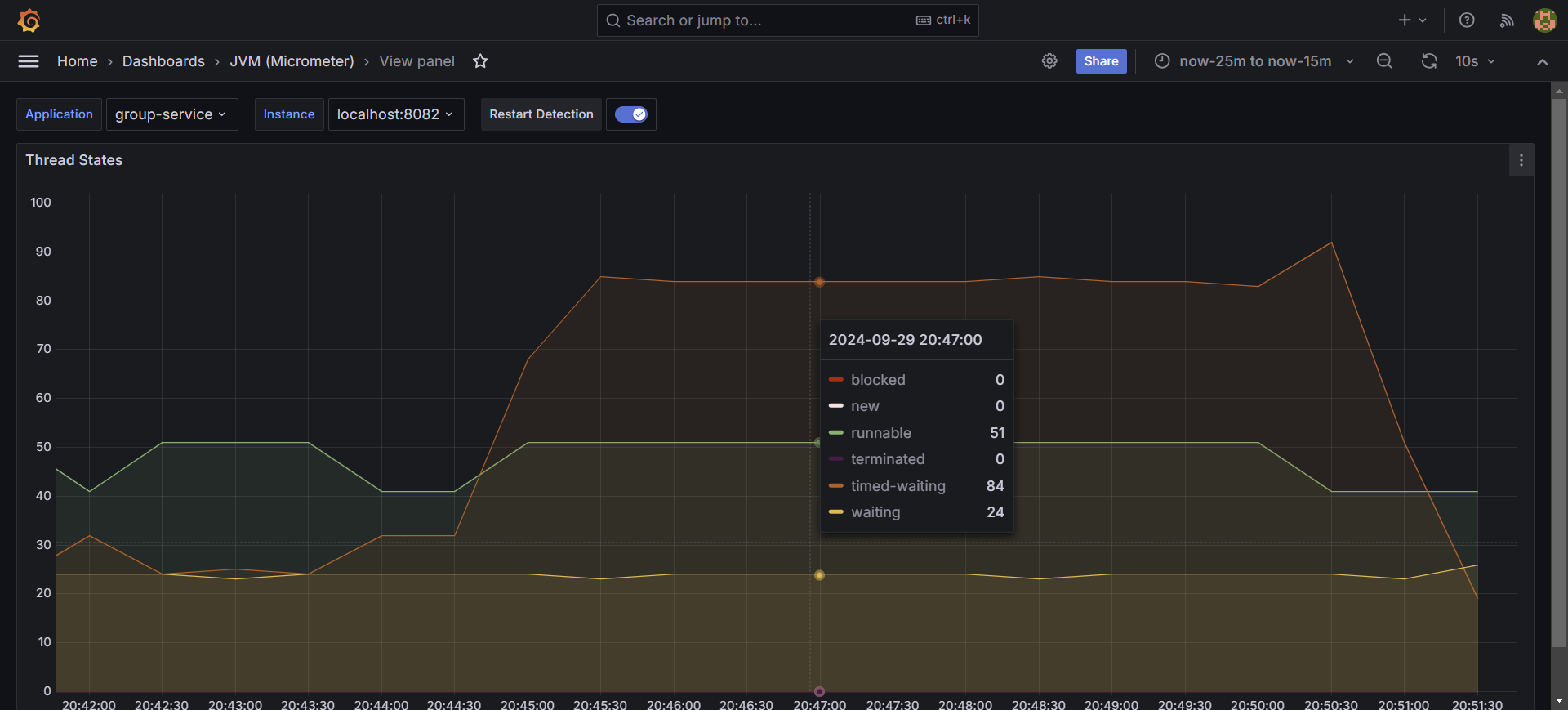 스레드 상태를 모니터링해보니 timed-waiting 이 많이 늘은 걸 볼 수 있었어요. 많은 스레드들이 결제 기능 에 묶여있는 걸 확인할 수 있었죠.