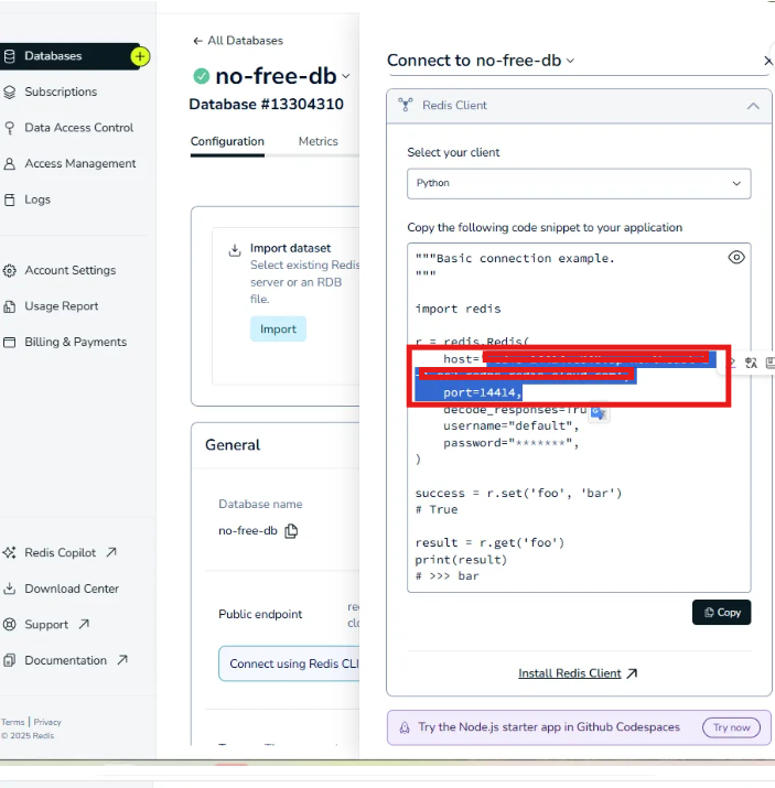 host, port , password 정보를 가져온다.