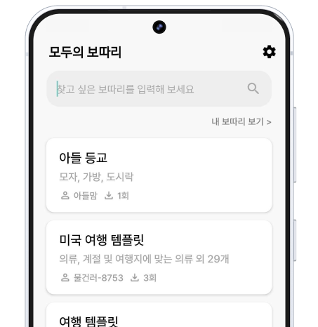 모두의 보따리 기능에서는 사용자들이 만든 보따리를 검색하거나 가져갈 수 있어요.