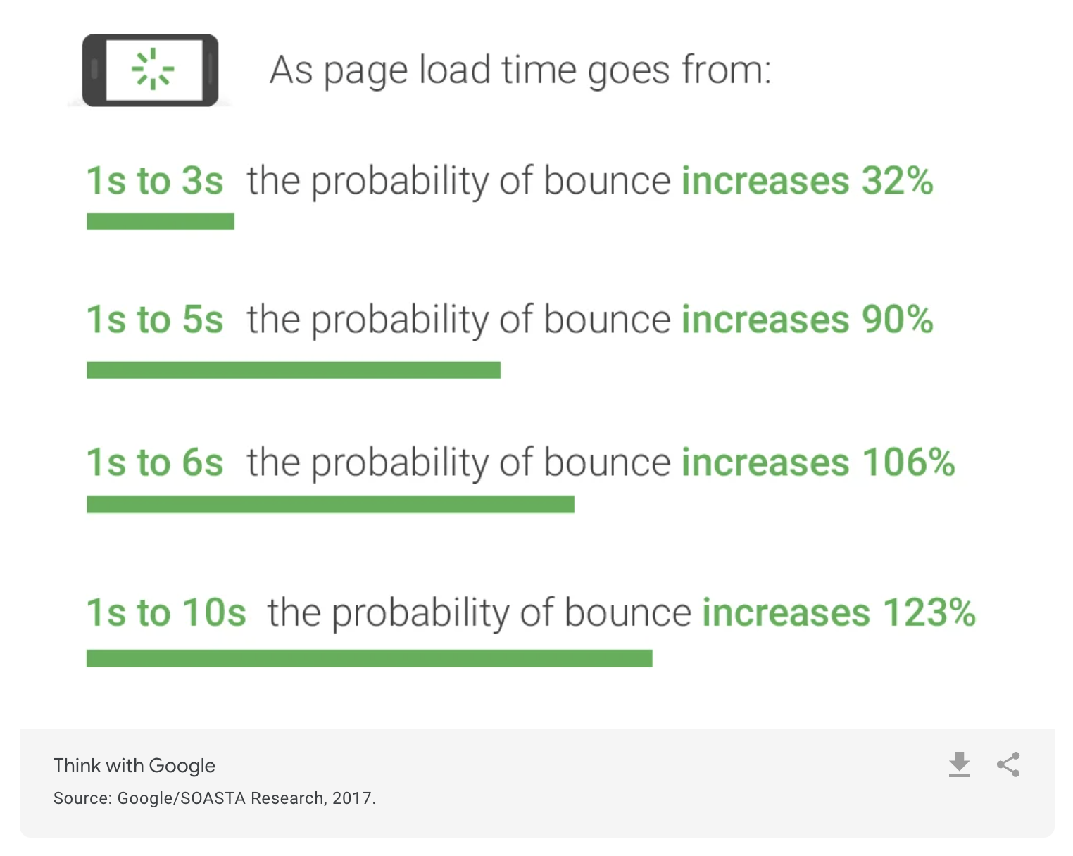 페이지 로딩 시간이 1초에서 3초로 늘어나면 이탈 확률은 32% 증가합니다. - 자료 출처