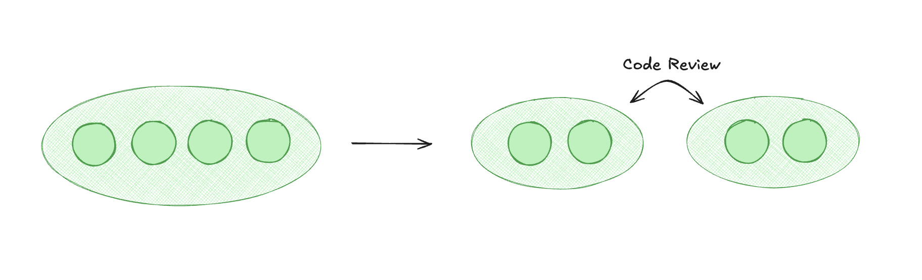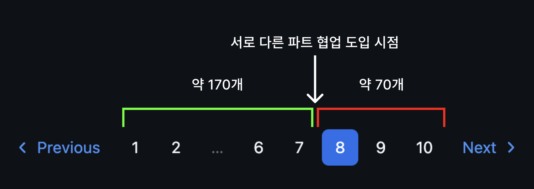 순간 모두가 멈칫하며 서로를 바라봤다... 그전까지는 전혀 문제라고 생각지 못했다. 4명이 같은 맥락을 공유하고 일관성 있는 코드를 작성하는 것이 멋지고 이상적인 협업이라 믿었다. 하지만 객관적인 결과물을 보니, 진행 속도가 생각보다 느리다는 것을 깨달았다.