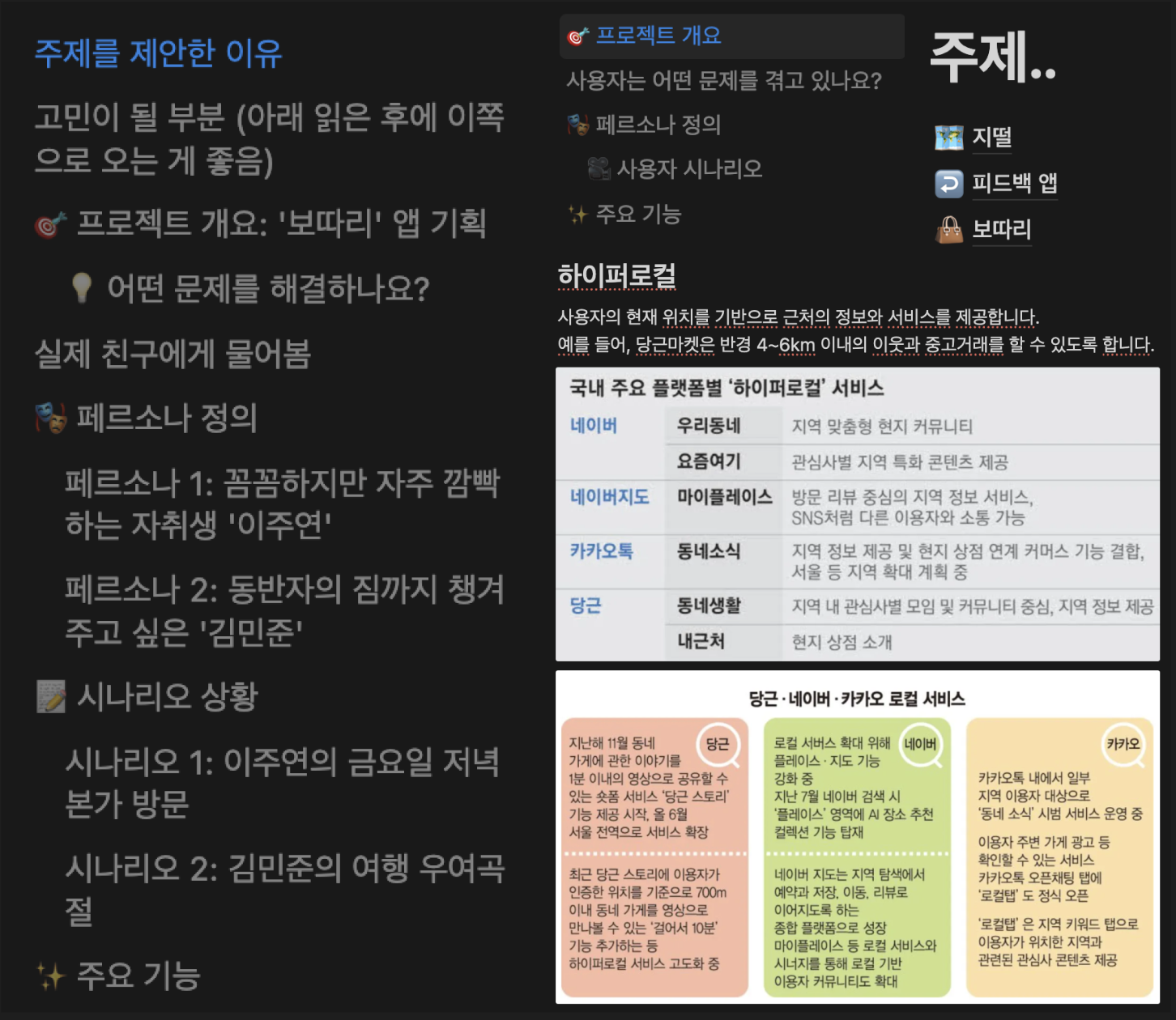 두 달 넘게 할 프로젝트이니 주제부터 완벽해야 했다. 사용자도 많아야 할 것 같았다. 내 아이디어가 채택되지 않을까 봐 발표 자료 준비에 엄청나게 공을 들였다.