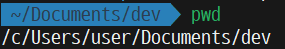 pwd는 "print working directory"의 약자로 현재 작업 중인 디렉토리의 절대 경로를 반환