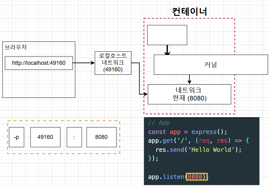그것과 유사하게 네트워크도 로컬 네트워크에 있던 것을 컨테이너 내부에 있는 네트워크에 연결을 시켜주어야한다.