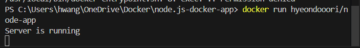 docker build -t <docker account>/<앱 이름>을 통해 실행시켜보았다.