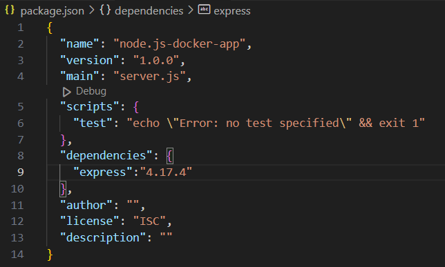 RUN에 쓴 npm install은 package.json파일에 명시된 모든 패키지를 설치하는 역할을 수행한다.