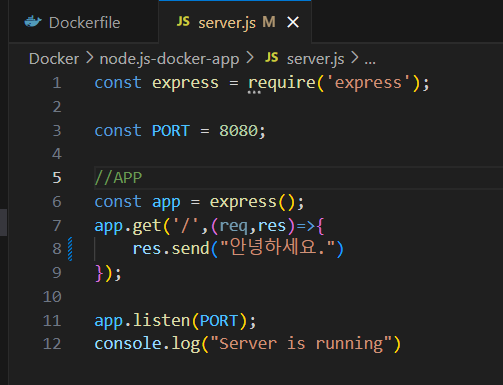 이제 이 Node.js 앱을 도커 환경에서 실행하기 위해서 도커와 관련된 부분을 만들어야한다.