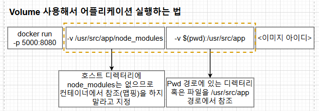 docker run -p 5000:8080 -v /usr/src/app/node_modules -v $(pwd):/usr/src/app <이미지 아이디>