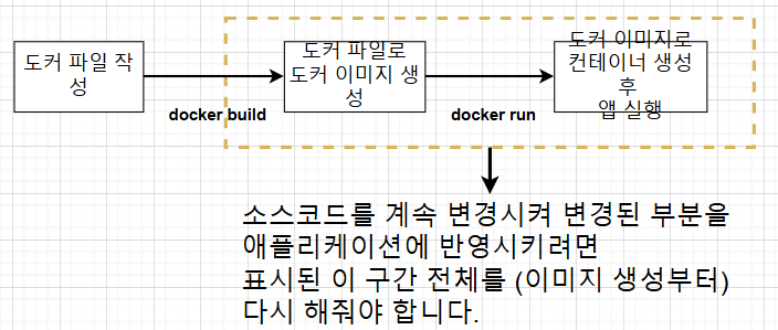 하지만 아직도 소스를 변경할 때마다 변경된 소스 부분은 COPY한 후 이미지를 다시 빌드를 해주고 컨테이너를 다시 실행해주어야지 변경된 소스가 화면에 반영이 된다.